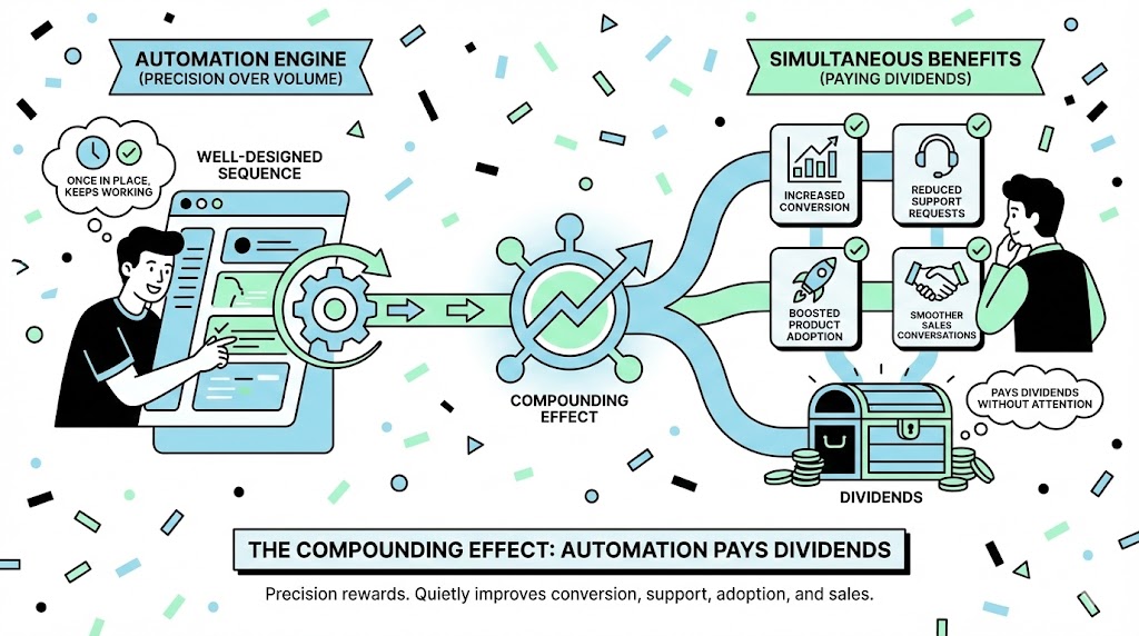 But the part I enjoy most is the compounding effect. A single well-designed sequence can quietly improve conversion, reduce support requests, boost product adoption, and make sales conversations smoother — all at the same time. It's one of the few marketing channels that rewards precision more than volume. Once the automation is in place, it keeps paying dividends without asking for more attention.