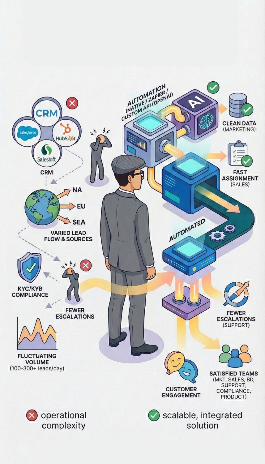 - Marketing needed clean data; Sales needed fast assignment; Support needed fewer manual escalations.