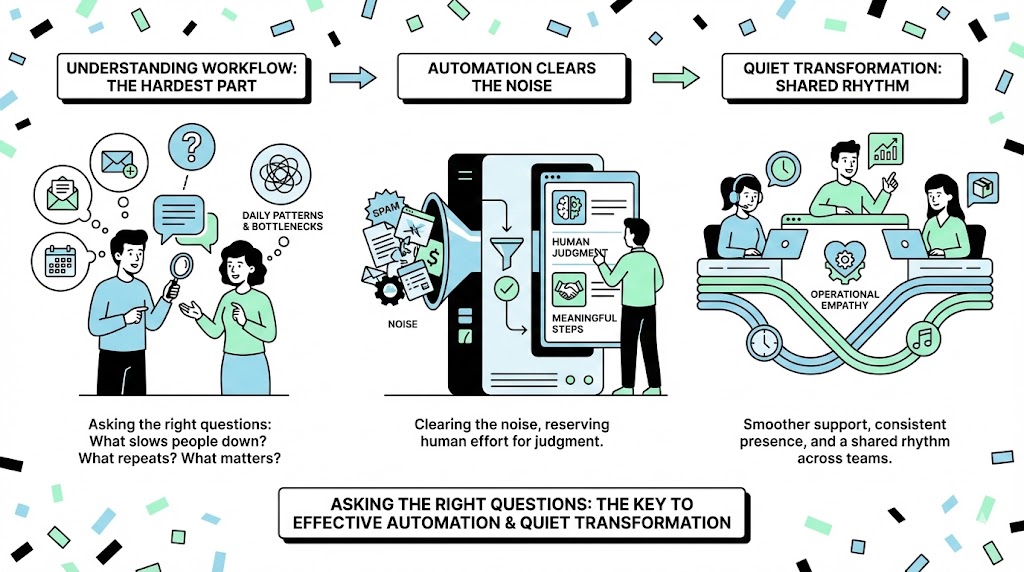 If there was a “lesson learned,” it was that the hardest part is not building the automation; the hardest part is asking the right questions. What exactly slows people down? What patterns repeat daily? Which steps are meaningful, and which are just muscle memory? Once you understand that, the solution becomes almost obvious. You use automation to clear the noise, and you reserve human effort for the parts where human judgment actually matters.